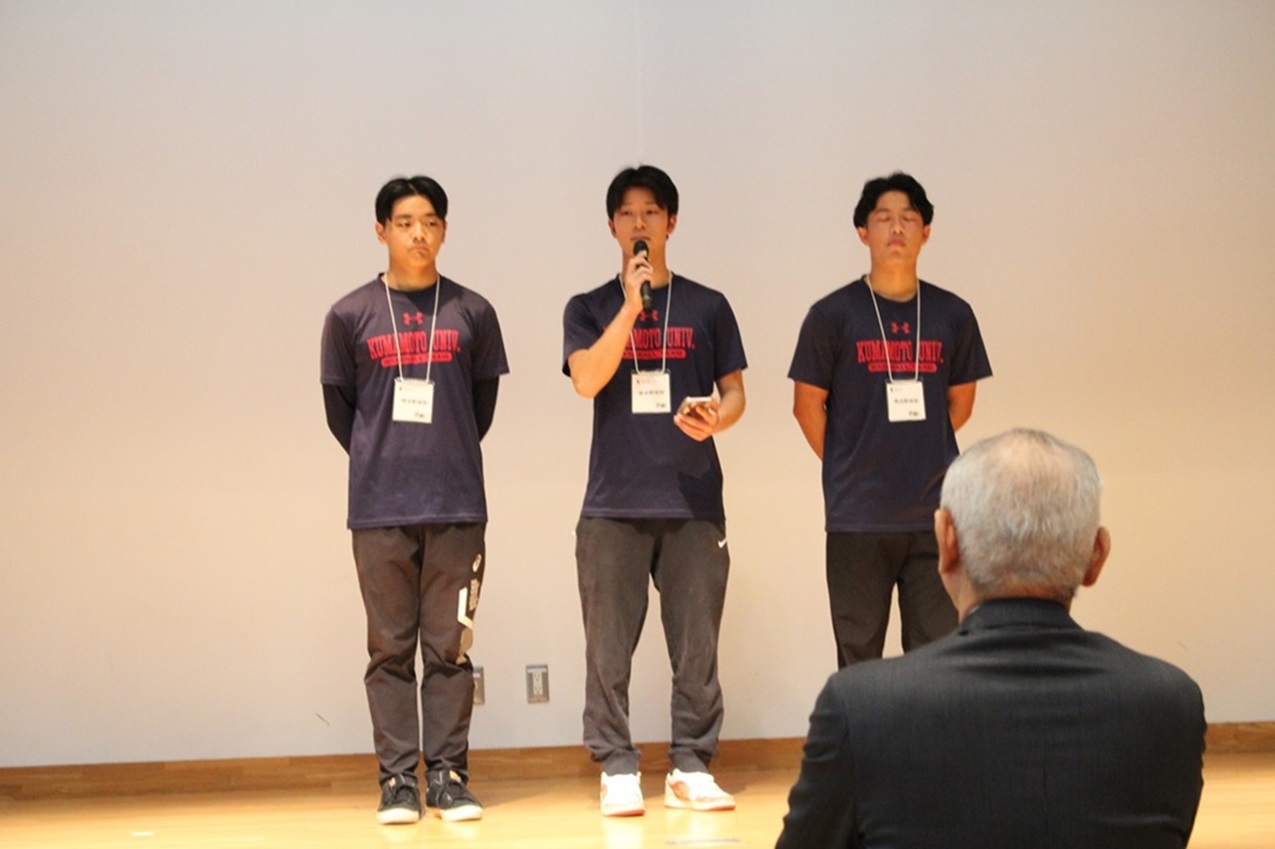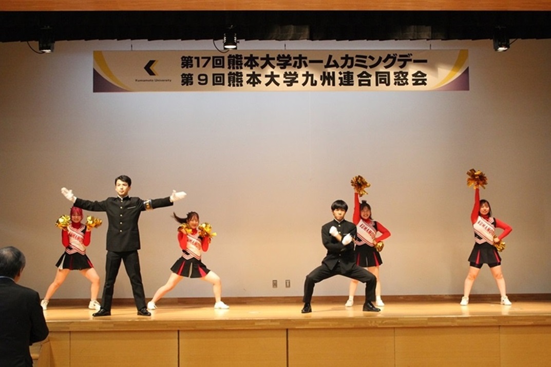 ? 終盤には、恒例となっている応援団のリーダー部とチアリーダー部による演舞が披露され、最後に旧制第五高等学校寮歌「武夫原頭に草萌えて」では参加者も一緒になり大合唱となりました。