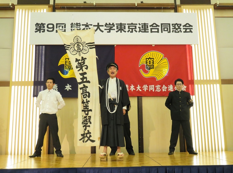 会の中盤では、恒例となっている応援団による「マーチングメドレー」、「巻頭言、五高寮歌」が披露されました。閉会に際しては、神崎芳郎 東京連合同窓会副会長から閉会の挨拶があり謝意が述べられ、盛況のうちに会は終了となりました。